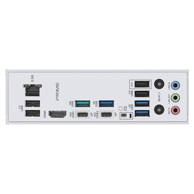 2 x USB4® (40Gbps) ports (2 x USB Type-C®) 1 x USB 10Gbps port (1 x Type-A) 3 x USB 5Gbps ports (3 x Type-A) 4 x USB 2.0 ports (4 x Type-A) 1 x HDMI™ port 1 x Wi-Fi module 1 x Realtek 2.5Gb Ethernet port 3 x Audio jacks 1 x BIOS FlashBack™ button |