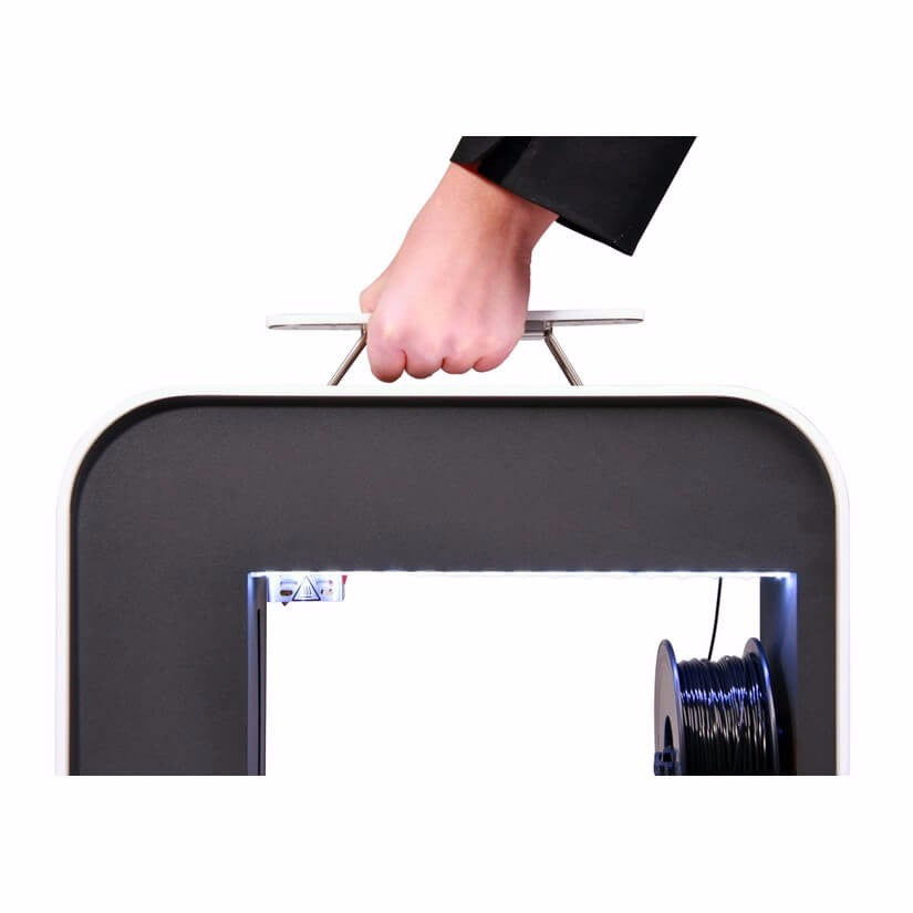About BEETHEFIRST+ (Plus) 3D Printer The wow factor for BEETHFIRST+ (Plus) is that it can resume printing from an absolute power loss. This means if the power is cut it can be resume. Simply plug the printer back into your computer and wait for BEESOFT to ask if you would like to resume the print. This feature is fairly powerful as it gives you the ability to turn thepower of on the printer, take it to another room or office and then resume straight from where it left off. The printer still prints a volume of 190 x 135 x 125mm, does not have a heated platform howevere it is removable, this makes it only capable of printing materials that do not require a heated platform. (ABS is not possible) The lack of an LCD Panel or SD Card Reader, makes it a requirement to have a computer to plug into it. Its only apparent method of connection is via USB Cable. It is worth mentioning that you can use BEEVERYCREATIVE°›s BEECONNECT device to add the ability to control and operate the printer via an LCD Panel with added ability to load/unload and print via USB Memory Key/USB Memory Stick. About the Software supplied with BEETHEFIRST+ (Plus) BEETHEFIRST+ (Plus) is provided with downloadable software BEESOFT. BEEVERYCREATIVE°›s very own slicing software package that is open source. The feature set in BEESOFT is continuously under development but it is worth mentionting the following. You can adjust layer hieghts, turn on and off rafts, turn on and off supports. It does not have an option to adjust temperure by default. This software has a predifned list of filaments that are called BEESUPPLY and by choosing or telling the software what filament is loaded the optimal print settings are set based on this. It is worth mentioning that the sotware does allow you to print from GCODE that could be created with other slicers. Simplify3D is one program you can use with BEETHEFIRST. It also allows you to export the GCODE generated from within BEESOFT allowing you to put the file onto a USB Memory Key/USB Memory Stick to print via BEECONNECT. In Depth with BEETHFIRST+(Plus) BEEVERYCREATIVE have assumed your need to access any of the componentry not necessary and this alone at least seems conforting to know. The added bonus of a carry handle justifies its styled design making it a portable printer and easy to maneuver. A Led lighting strip that highlights the platform making it not only look nice but easier to see your 3D Prints appear out of thin air. A heat protecting shroud covers the hot compnents of the printer and only preturdes a little. This makes it in our opinion very difficult to get your hands burnt with accidentally movement in and around the moving parts of the machine. The location of the spool holder is designed specifically for BEESUPPLY Roles, the rolls are 330g in weight. Although this is not favourable the printer does not have a chip or any smarts to recognize the material loaded so you can like many 3D Printers use alternate materials mounted on your own ingenius spool holder design. The new extruder as pictured below allows you to print with more materials, and thanks to BEEVERYCREATIVE they have given you the ability to print a special spool holder that allows you to remove the handle and feed the fiament in from the top of the printer. |