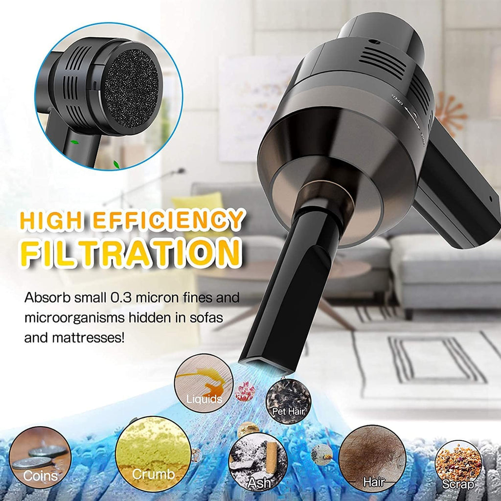 【EFFIENCY AND QUICK 】☆ Cordless handheld vacuum cleaner adopt high-density filter which is more powerful and durable than normal filters.Built-in high performance powerful motor to provide a powerful suction, this vacuum cleaner makes it more efficiency to clean the dust and debris, one button to start an easy cleaning.This vacuum cleaner makes cleaning easier, having a neat and clean environment to elevate your lifestyle, saving more effort on cleaning your house or car interior