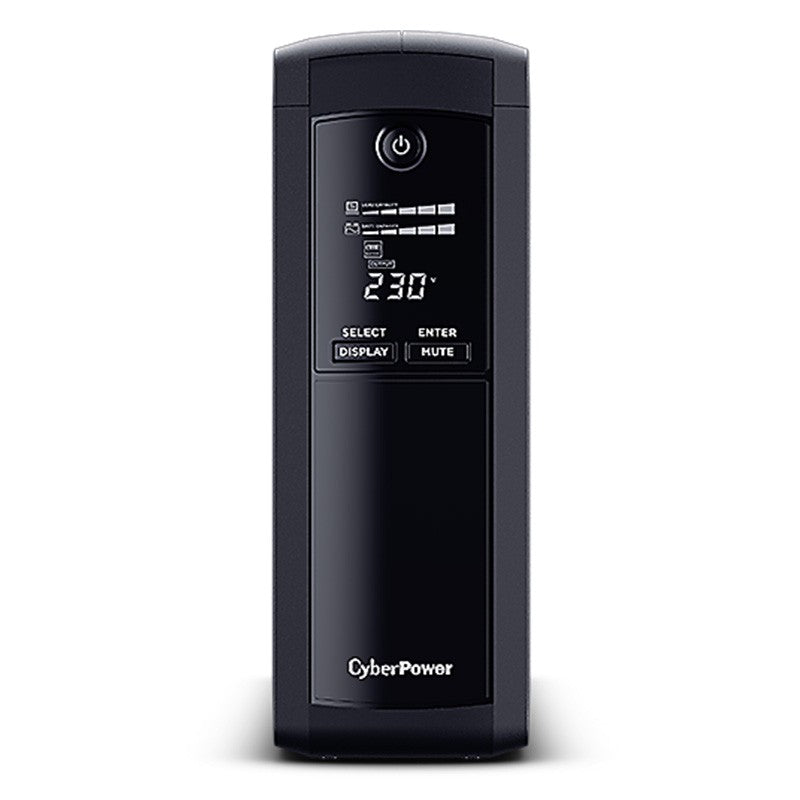 CyberPower VP1200ELCD offers home and office users a reliable battery backup and safeguards office PCs and other electronic devices from surges, spikes, brownouts and other power incidents. Designed with GreenPower UPS™ Technology to improve UPS operating efficiency and to minimize its energy consumption, users can enjoy significant energy cost savings over conventional UPS systems. The UPS provides Automatic Voltage Regulation (AVR) to maintain safe voltage for connected equipment.