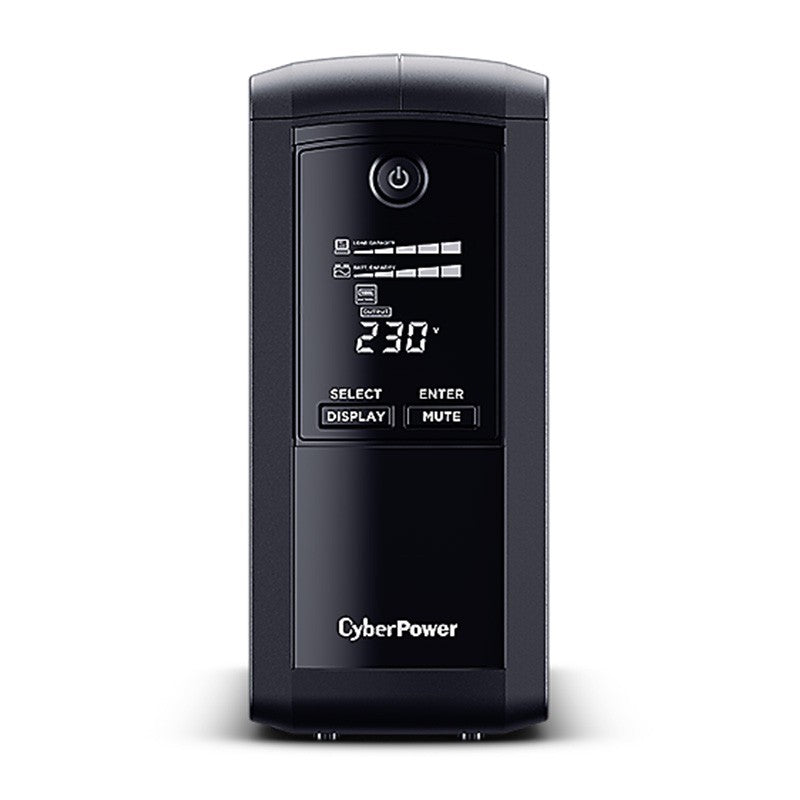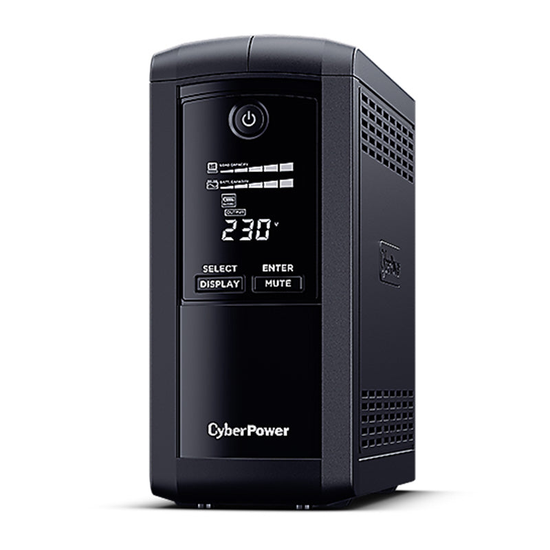 CyberPower VP700ELCD offers home and office users a reliable battery backup and safeguards office PCs and other electronic devices from surges, spikes, brownouts and other power incidents. Designed with GreenPower UPS™ Technology to improve operating efficiency and to minimize energy consumption, users can enjoy significant energy cost savings over conventional UPS systems. The UPS provides Automatic Voltage Regulation (AVR) to maintain safe voltage for connected equipment.