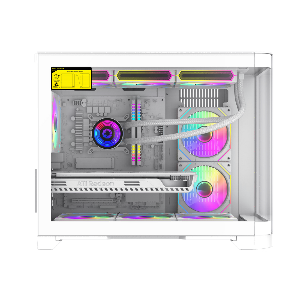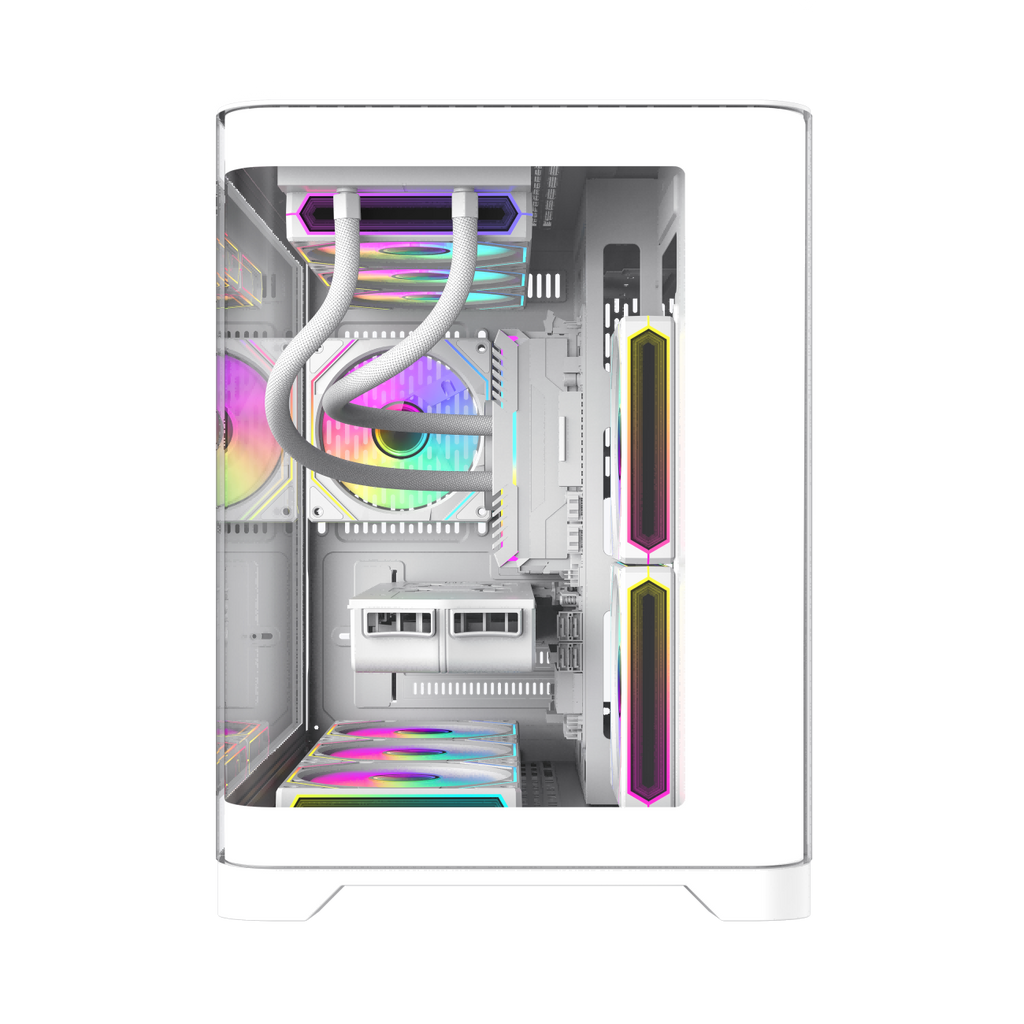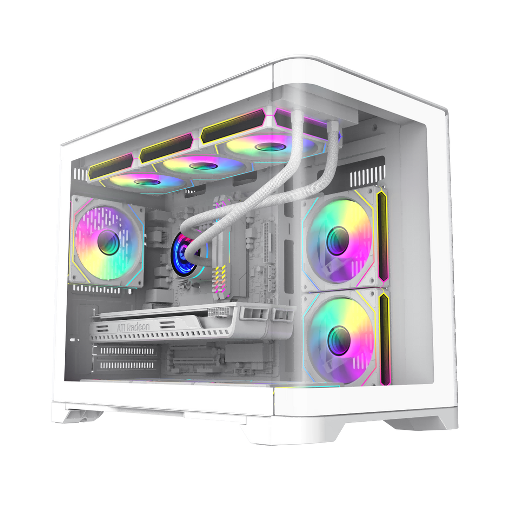 ? Computer Case Focus on Cooling- 3 x pre-installed 120mm ARGB Fans- 2 beneath the floor, and one at the back of the case. help with great ventilation, The top of the HYPE supports up to a 360mm radiator.