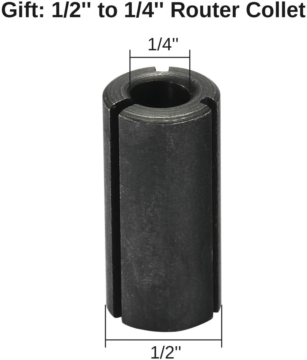 - Shank diameter: 1/4''(6.35mm), cutting diameter: 0.94'' (24mm), cutting length: 7mm, overall length: 40mm, comes with 3pcs 1/2" to 1/4" router collet (Gift).