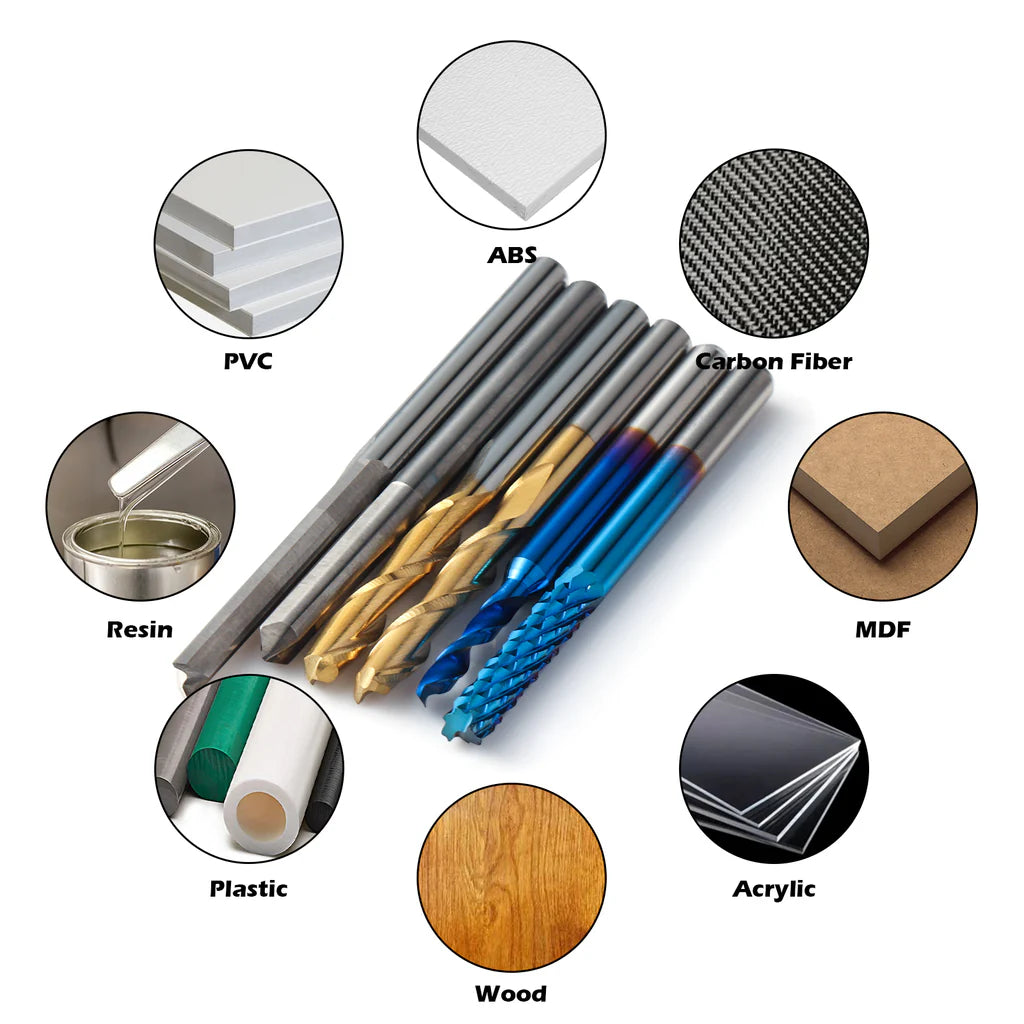 Applicable Materials: Suitable for such as MDF, PVC, PCB, Acrylic, wood, solid wood, Nylon, Resin, plywood, carbon fiber, amber beeswax, etc. Widely used for 3D relief sculpting/2D lettering/cutting/grooving/slotting/drilling/hollowing/positioning/roughing/milling.