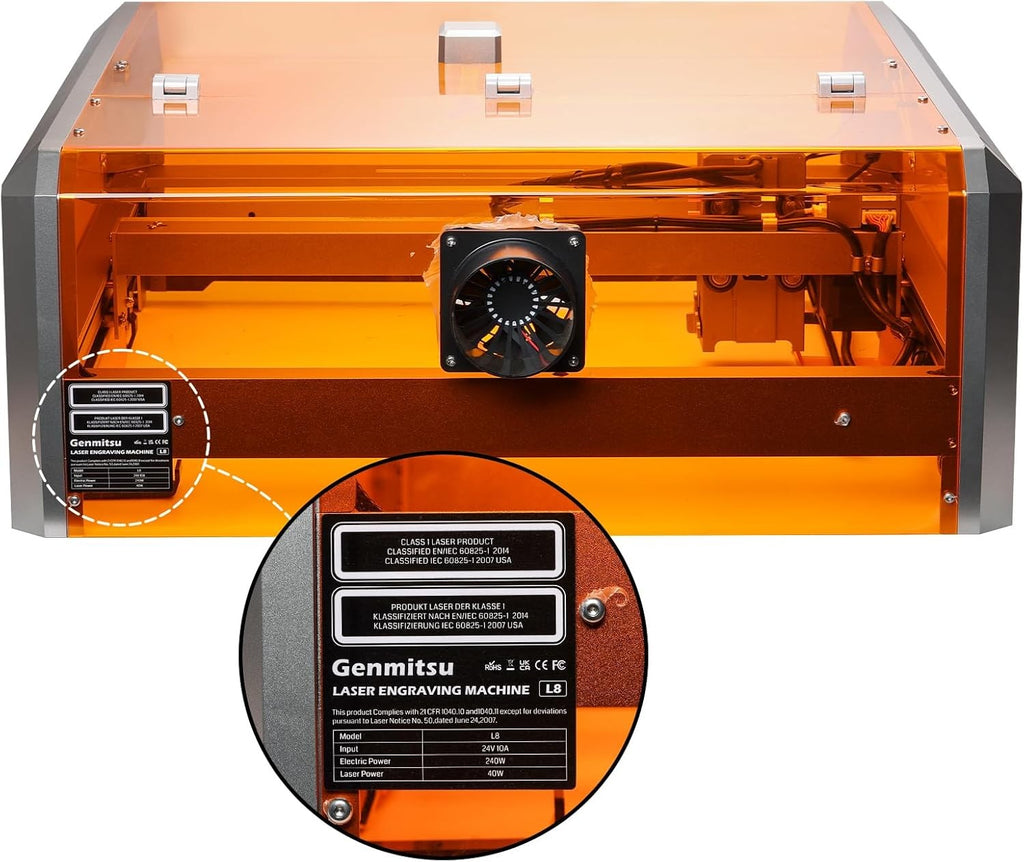 Laser Safety Class 1 Certified: Features tilted automatic stop, active flame monitor buzzer, a full set of position protection limit switches, emergency stop, child safety lock, we got you back using this high power machine safely.
