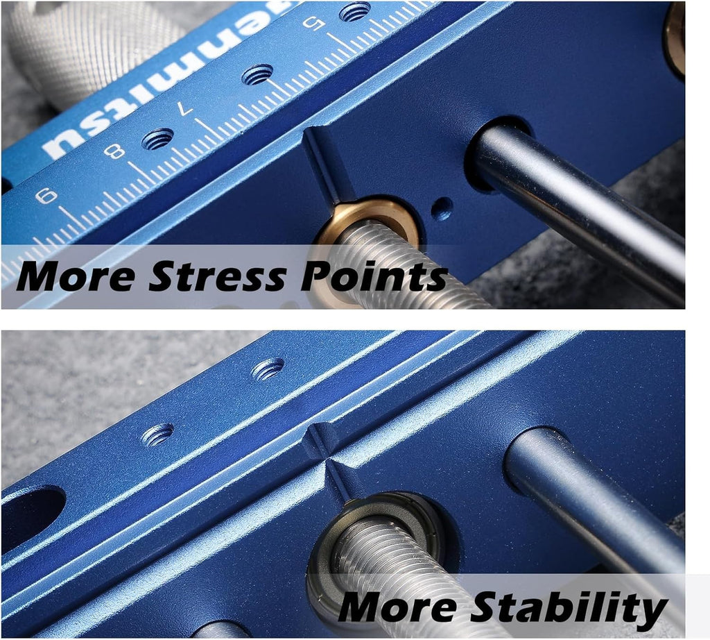 Fixed Lead Screw: The central screw rod has been upgraded to be a fixed lead screw. This allows for easy placement of your clamp when clamping large items, as it no longer protrudes outward and takes up unnecessary space on the Y-axis.