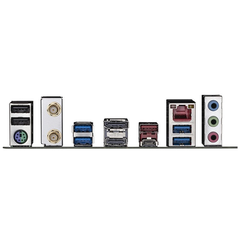 1 x PS/2 keyboard/mouse port 1 x USB Type-C® port, with USB 3.2 Gen 2 support 1 x USB 3.2 Gen 2 Type-A port (red) 4 x USB 3.2 Gen 1 ports 2 x USB 2.0/1.1 ports 2 x SMA antenna connectors (2T2R) 1 x HDMI port 1 x DisplayPort 1 x RJ-45 port 3 x audio jacks |