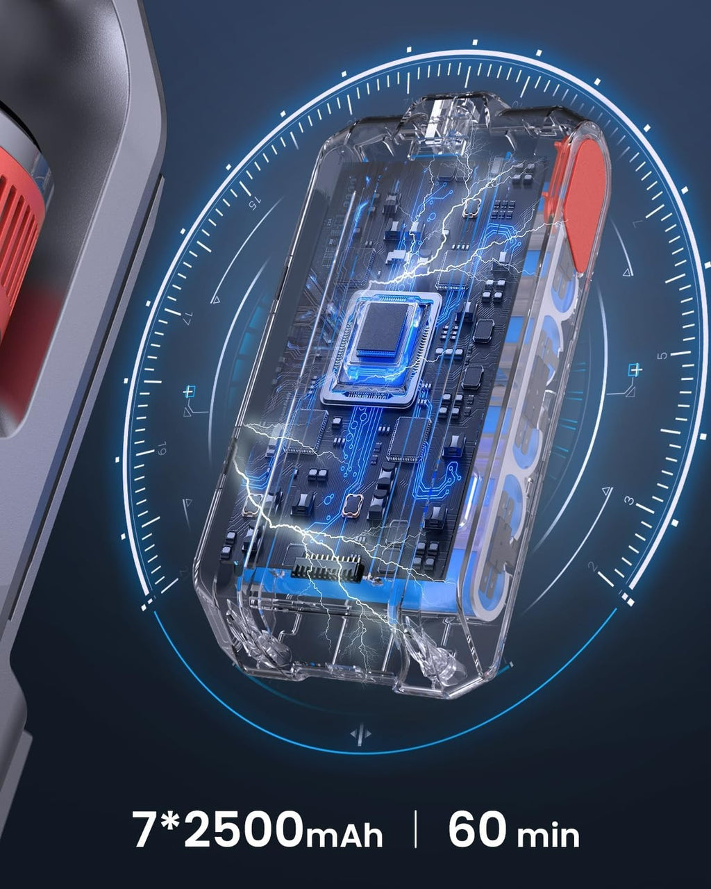 Seven-cell energy-dense battery: Delivers up to 60 minutes of fade-free power.