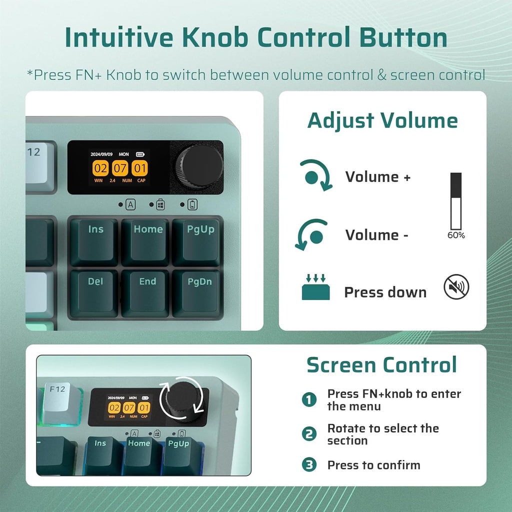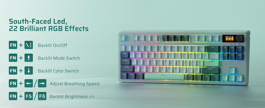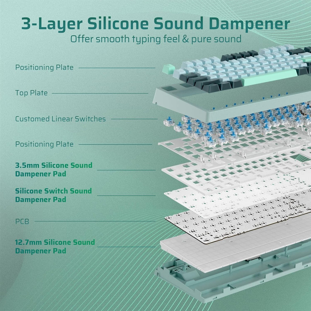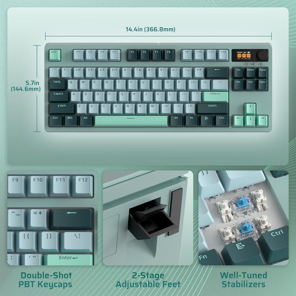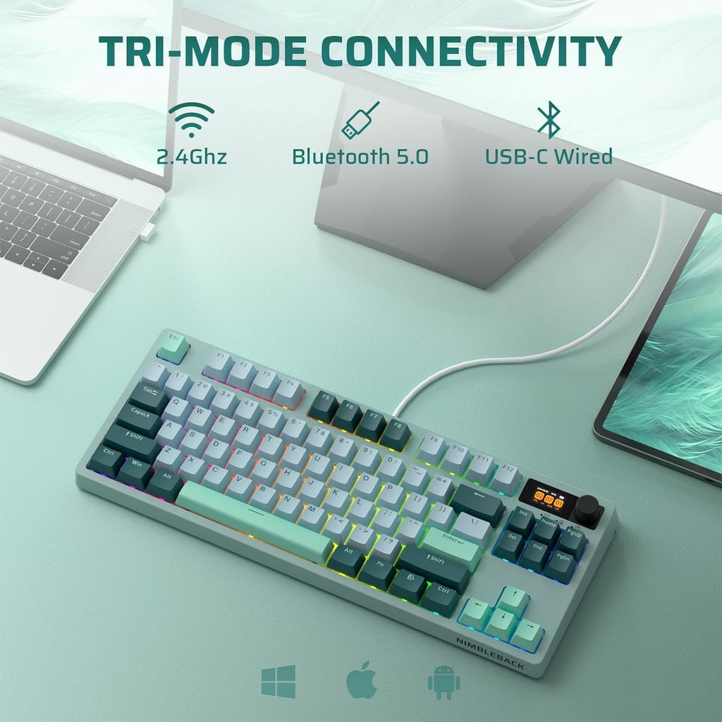 LTC Nimbleback NB841 PRO 75% Wireless 2.4G/ BT/USB-C Wired RGB 84 Keys Gaming Mechanical 3-Layer Dampener, Hot Swap PCB Keyboard Lake Blue Switches, G