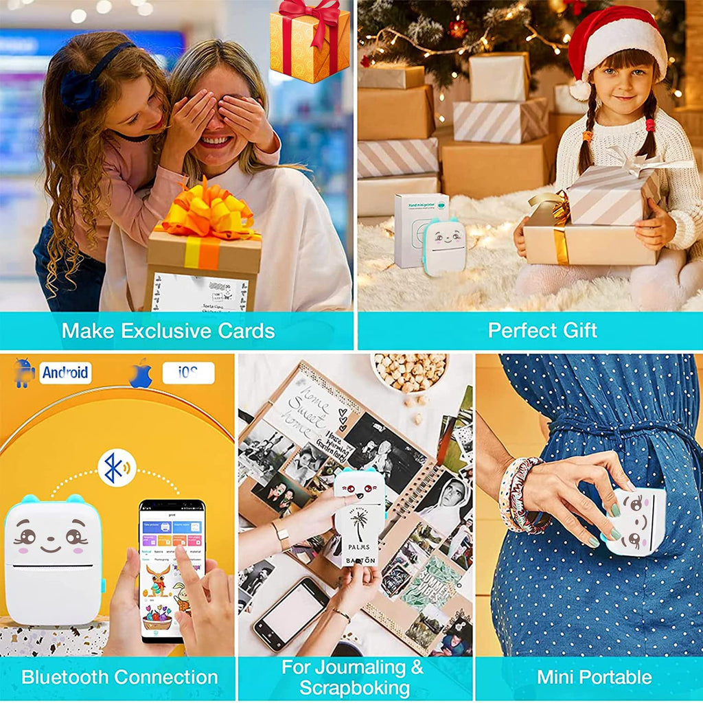 The cute mini printer is a perfect gifts for anyone.Stay in control at work/study and print your notes to organize your tasks or label anything you want. ALWAYS BE ORGANIZED ALWASYS. Suitable for all ages, students can study, language learning, and collection of wrong questions. Suitable for office workers, easy to print notes, sticky notes, memos. It is more suitable for DIY enthusiasts and can record life