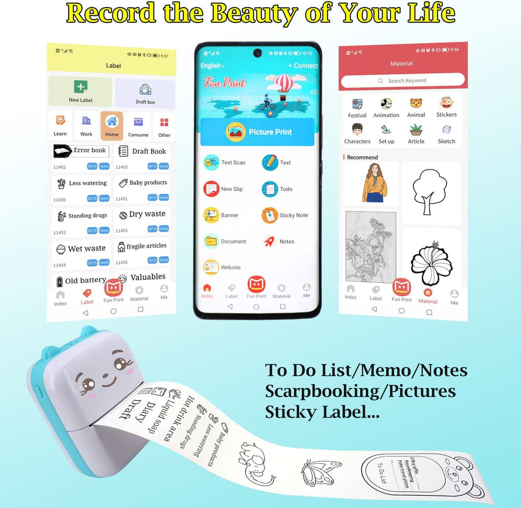 Picture printer for phone can print photos, small text and some cute frames, make your journal more fun. Record the scenery and interesting things in your travels.