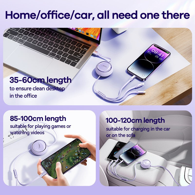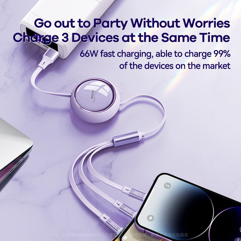 MOREJOY Remax 66W Super Fast Charging Cable 1.2m RC-C029 Retractable Multi 3 in 1 Fit for Most Charging Equipment Blue