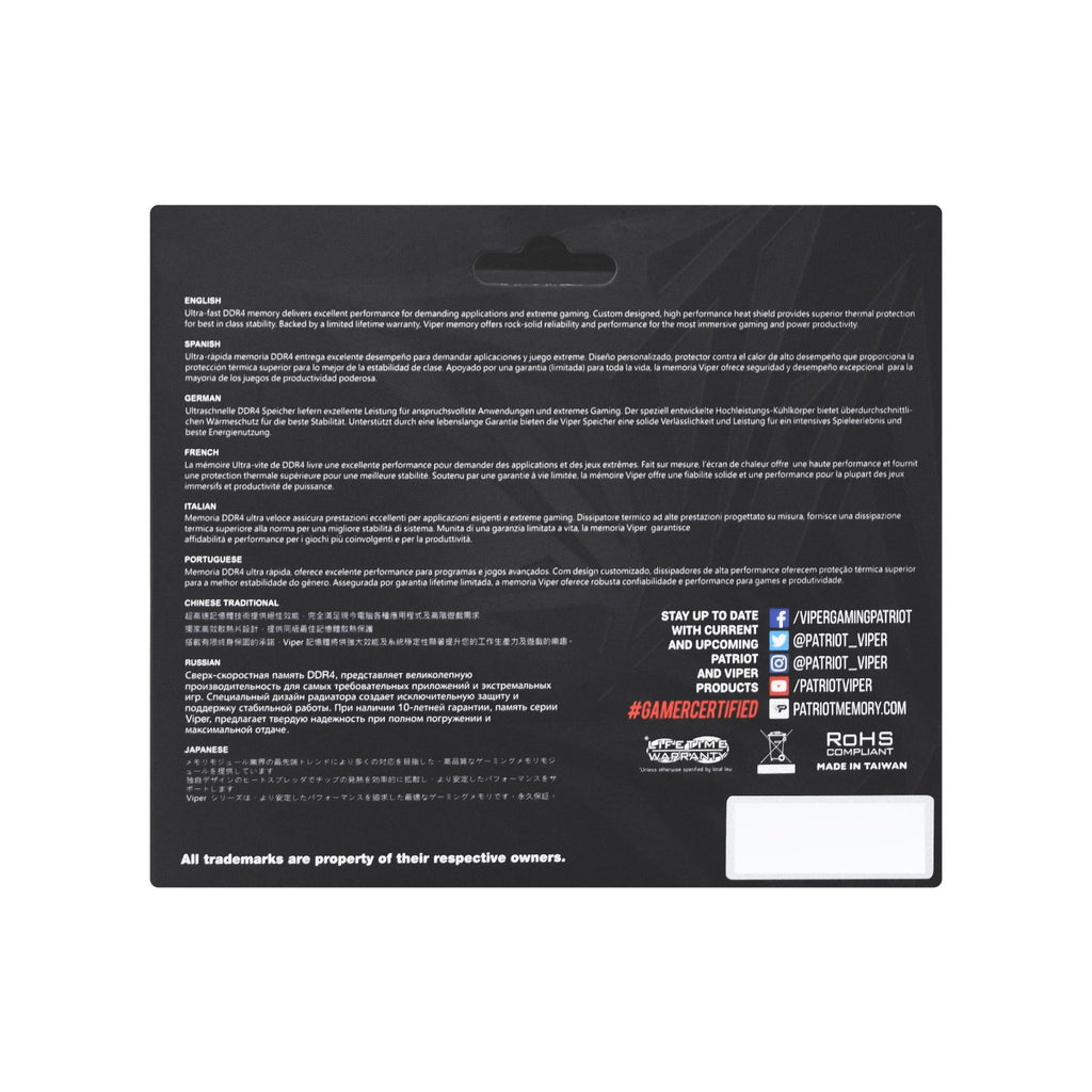 The Viper Steel RGB’s aluminum heat shield provides supreme heat dissipation to maintain amazing performance. Built for the latest Intel® and AMD™ platforms, our Viper Steel RGB DDR4 memory provides the perfect performance combined with fierce radiating LED lights. Comes equipped with XMP 2.0 support for automatic overclocking settings for the optimal performance and stability. Compatibility with lead motherboard partners’ RGB sync applications make this memory easy to customize to your personalized profiles for any occasion. Tested for quality assurance, our Viper Steel RGB DDR4 memory is backed by a limited lifetime warranty.