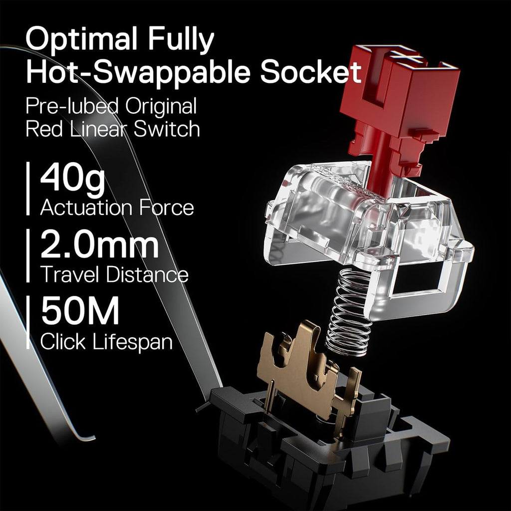 YES! TRUE HOT-SWAP - The transformative innovation with 99.8%+ switches compatible free-mod hot swappable Redragon keyboard is available now. The unique exclusive structure design of the socket makes the switch mounting easier and less wobbling.