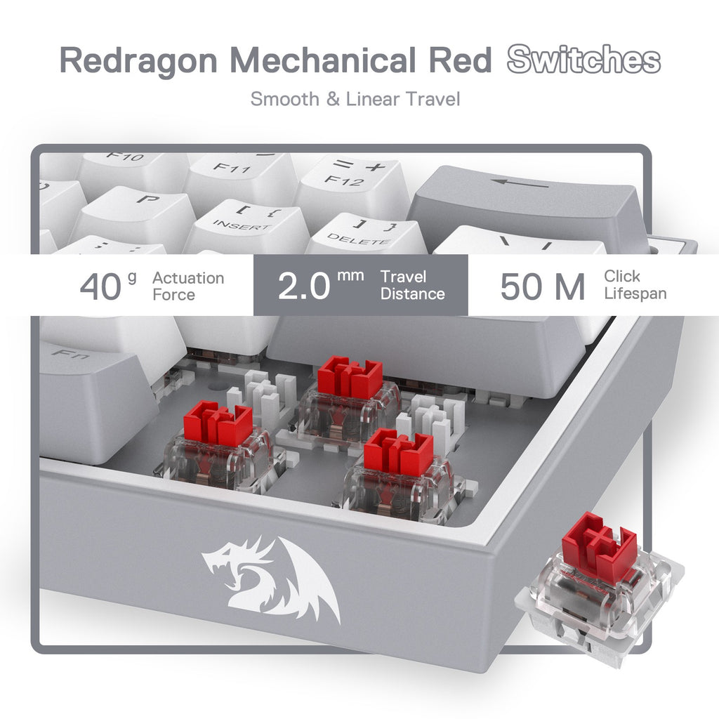 Hot-Swappable Red Switches: Most quiet mechanical switch, linear and soft key travel makes every click easy to register. Hot-swappable with other Redragon switches. Made to last with switches rated for 50 million keypresses.