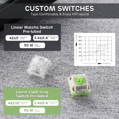 Pre-Lubed Matcha and Light Gray Linear Switches for Smooth Typing