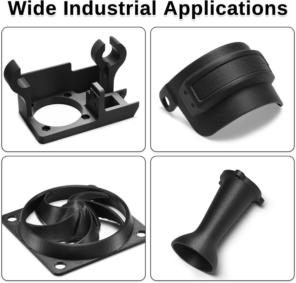 [Wide Industrial Applications]: The carbon fiber reinforced material enables weight reduction and durability, suitable for functional prototypes, tools, fixtures, end-use parts, pump impellers, mechanical gears, precision and engineering components, widely used in robots, drones, and automotive and aviation industry.