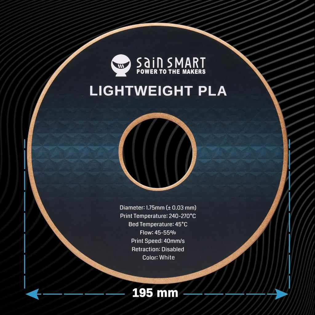 SainSmart LW-PLA (Lightweight PLA) is a 3d printing material specially developed for aeromodelling drones and cosplay. Compared with regular PLA Filament, printing with the LW-PLA Filament delivers a lighter wing load and a lower stall speed to your aircraft models. With a better balance between strength and weight, it also brings better performance to your models.