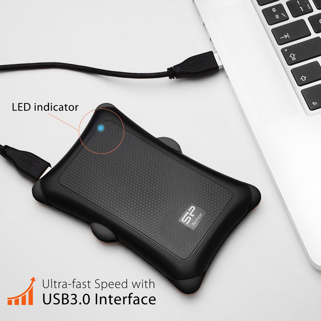 Silicon Power 2TB A30 Rugged Shockproof Portable External Hard Drive USB 3.0 For PC,MAC,XBOX,PS4,PS5 - Black