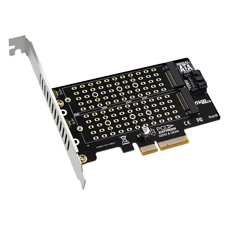 The expansion card offers the convenience of integrating both fast NVMe M.2 SSDs and traditional SATA M.2 SSDs simultaneously, making it an adaptable solution for upgrading and expanding storage on existing systems.