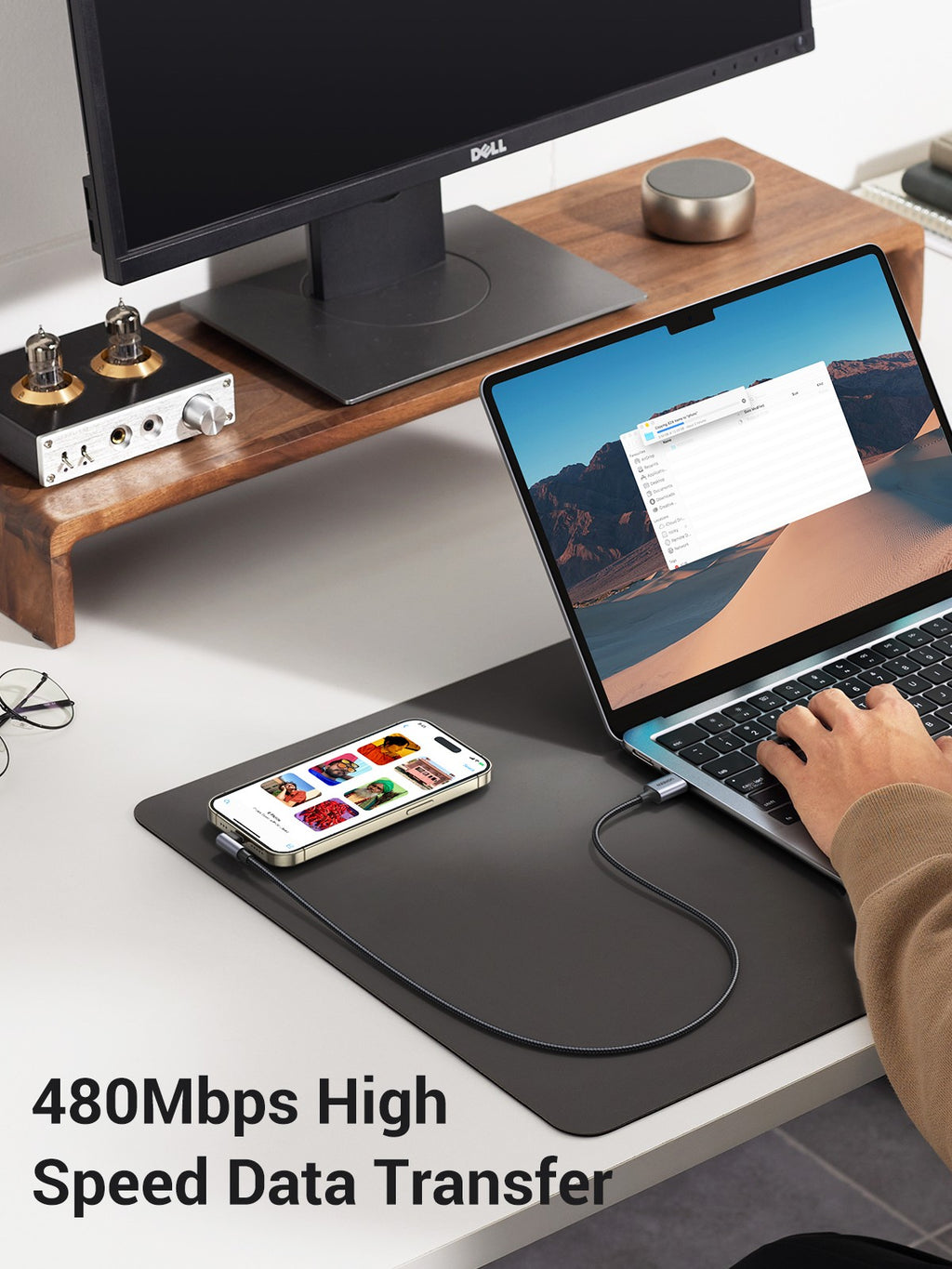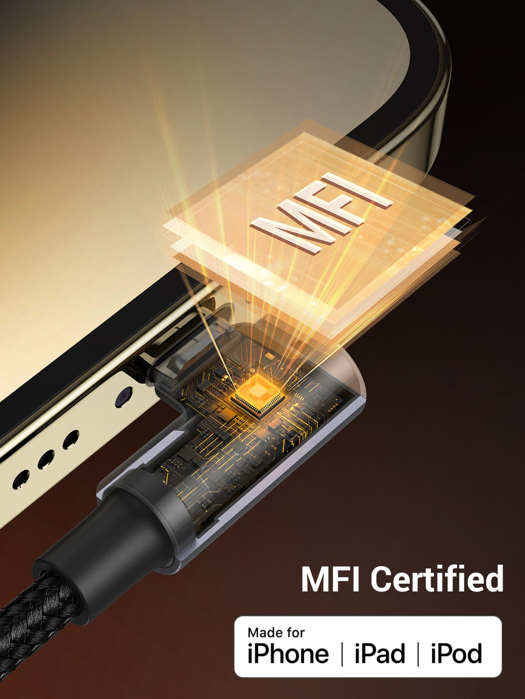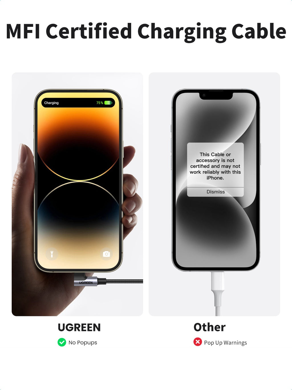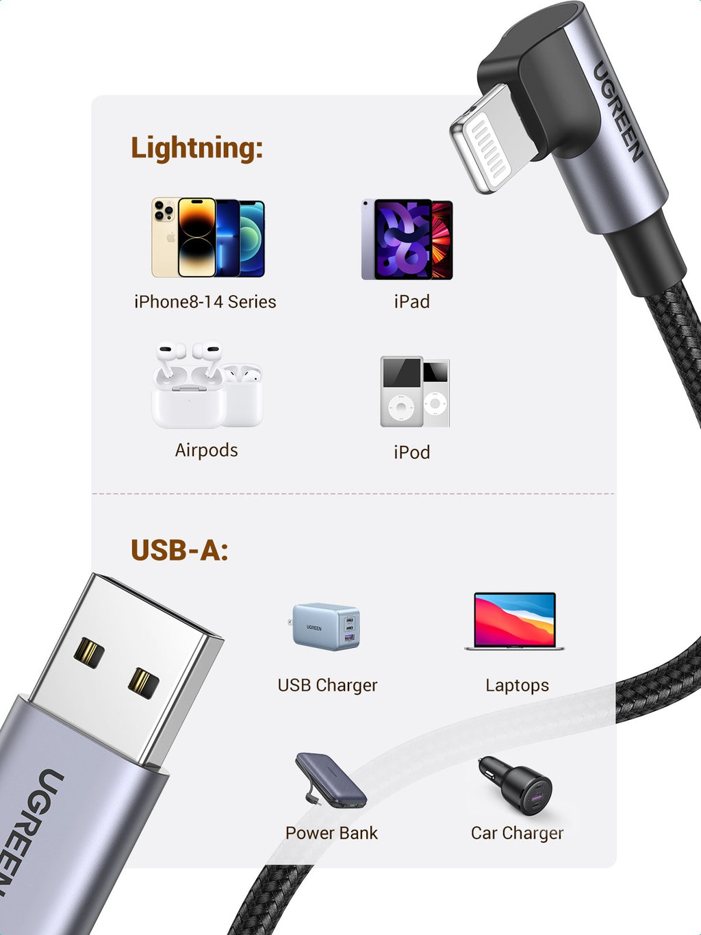 UGREEN Angled Lightning To USB 2.0 A Male Cable - 1M Black