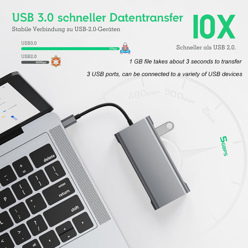 【Dual core technology, PD fast charging】: aviation aluminum housing and optimised heat dissipation system ensure better heat dissipation and safe use. Combined with the built-in dual-core chip, which has lower power consumption, all ports can work efficiently and data transfer speed will be faster. Supports up to 100 W fast charging
