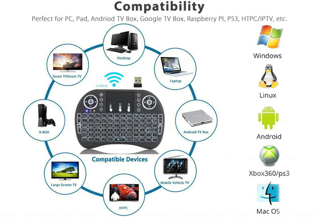 - Compatible with PC, Android TV Box, Smart TV,HTPC,Xbox360/Ps3,Ps4,laptops,Raspberry Pi 3 ,Tablet, etc.